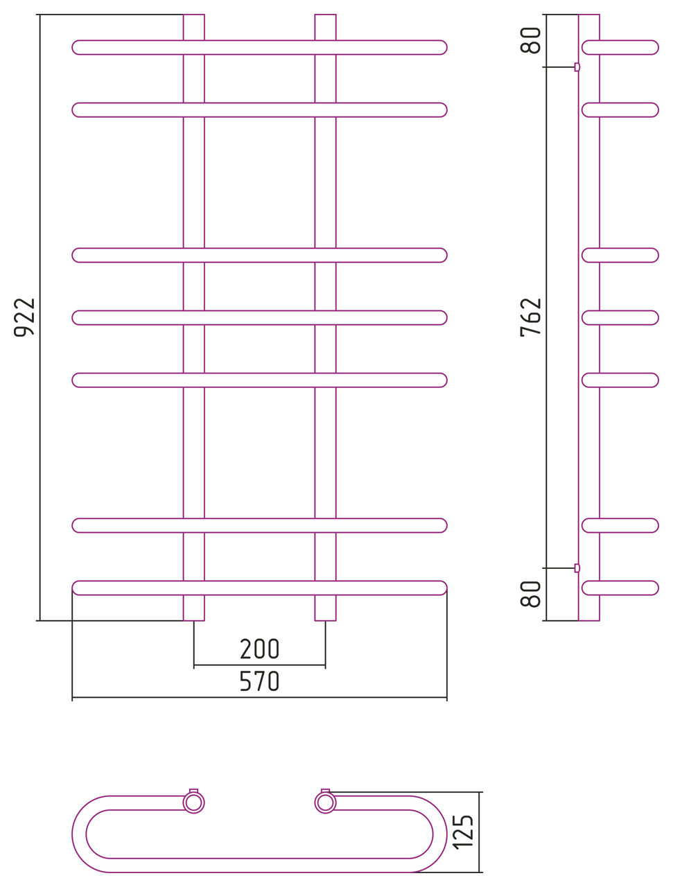 Размер полотенцесушителя:1000x600