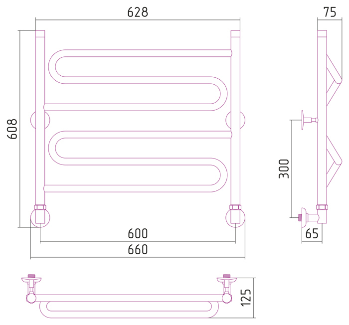 Полотенцесушитель водяной Стилье Вариация 600x600