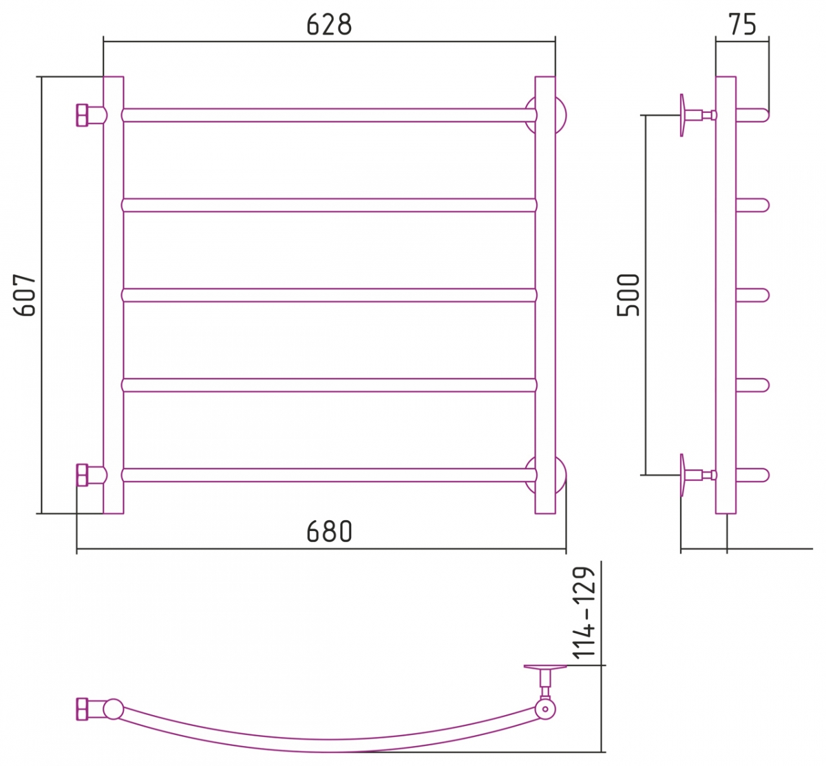 Полотенцесушитель водяной Стилье Версия-Б2 500x600