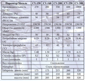 Характеристики канального вентилятора Era CV-200: